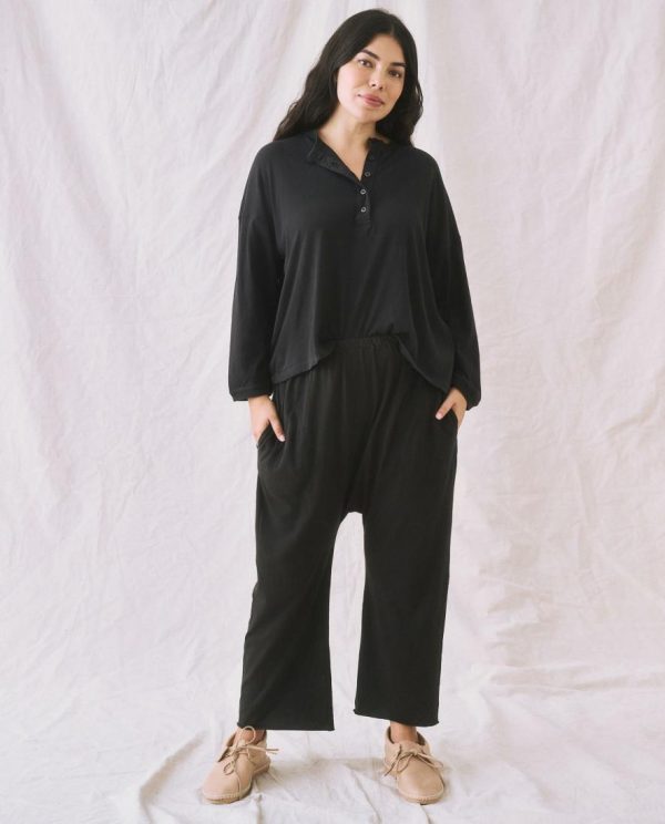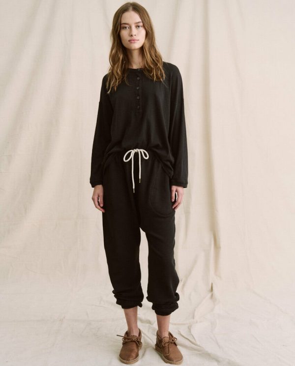 The Great. Long Sleeve Tees | Women The Shrunken Henley. Almost Black