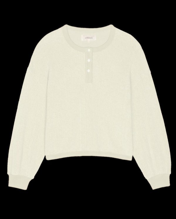 The Great. Novelty Tees & Sweats | Women The Fleece Henley Sweatshirt. Washed White
