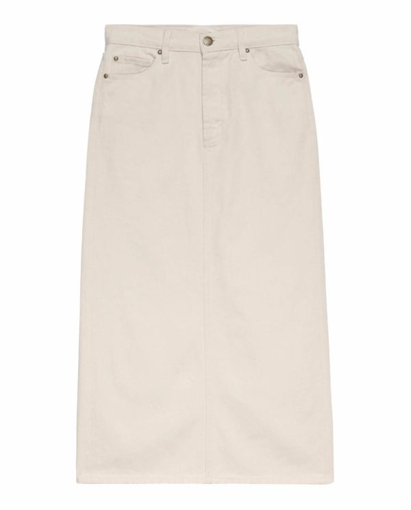 A versatile closet staple, The Column Skirt will be a forever favorite. This classic silhouette fits snug through the hips and straight through the body. It includes a back yoke with classic denim double stitching all around, and styles back to everything from tanks and tees to knits. The fit sits just below the waist and hits above the ankle with a slit up the center back body finished with a bar tack. Classic five-pocket details include a zip fly with metal button waist opening, finished with scoop pockets at the front and back patch pockets at the back.